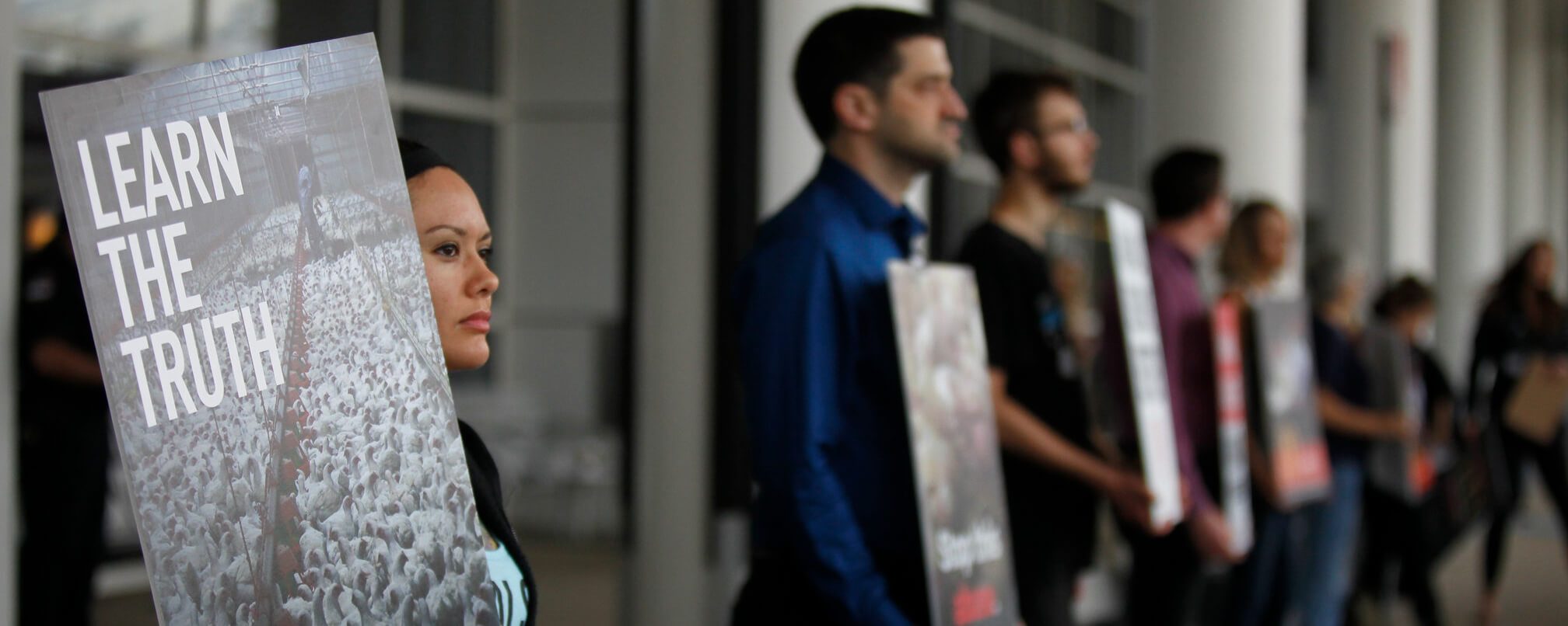 Using these values to launch innovative projects and strategic campaigns, we work to expose and abolish the cruel practices of the animal agriculture industry.