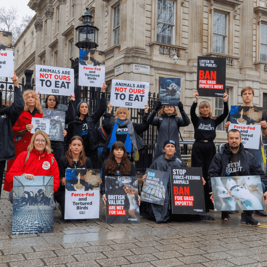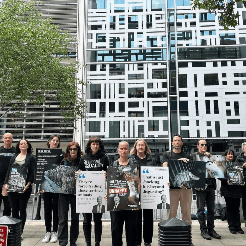 +Our actions are peaceful, organised, and designed to make a strong public impact for animals. They often take place in visible public spaces and may involve standing or walking for extending periods, chanting, and holding placards.