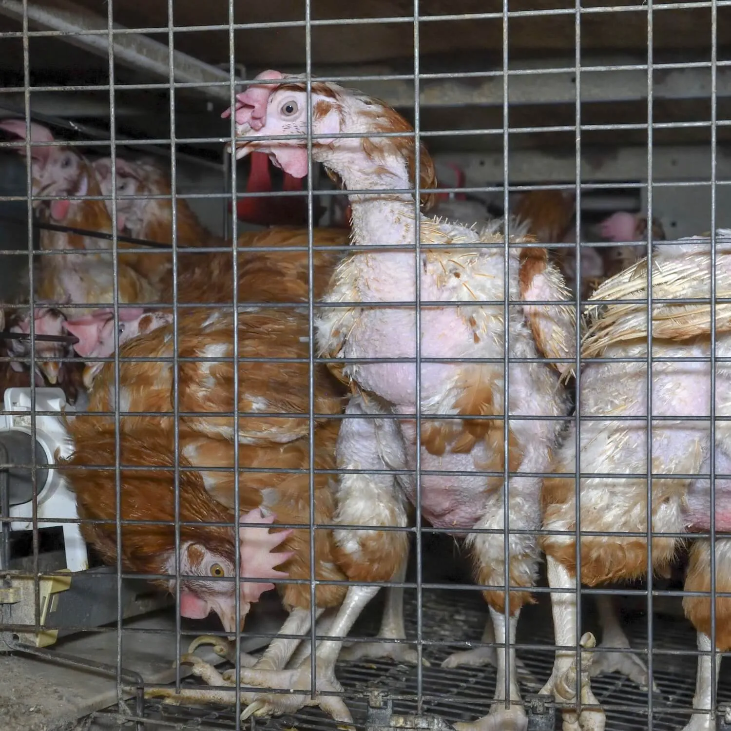 This confinement causes injuries such as feather loss, sores, and broken bones, while the stress leads to abnormal behaviours and psychological distress.