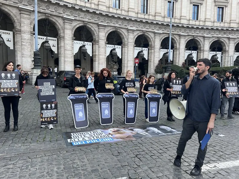 October 2025: They tried to intimidate us. We unfurled a banner from a bridge in central Rome and authorities seized it, simply because we peacefully showed a message in defense of animals.