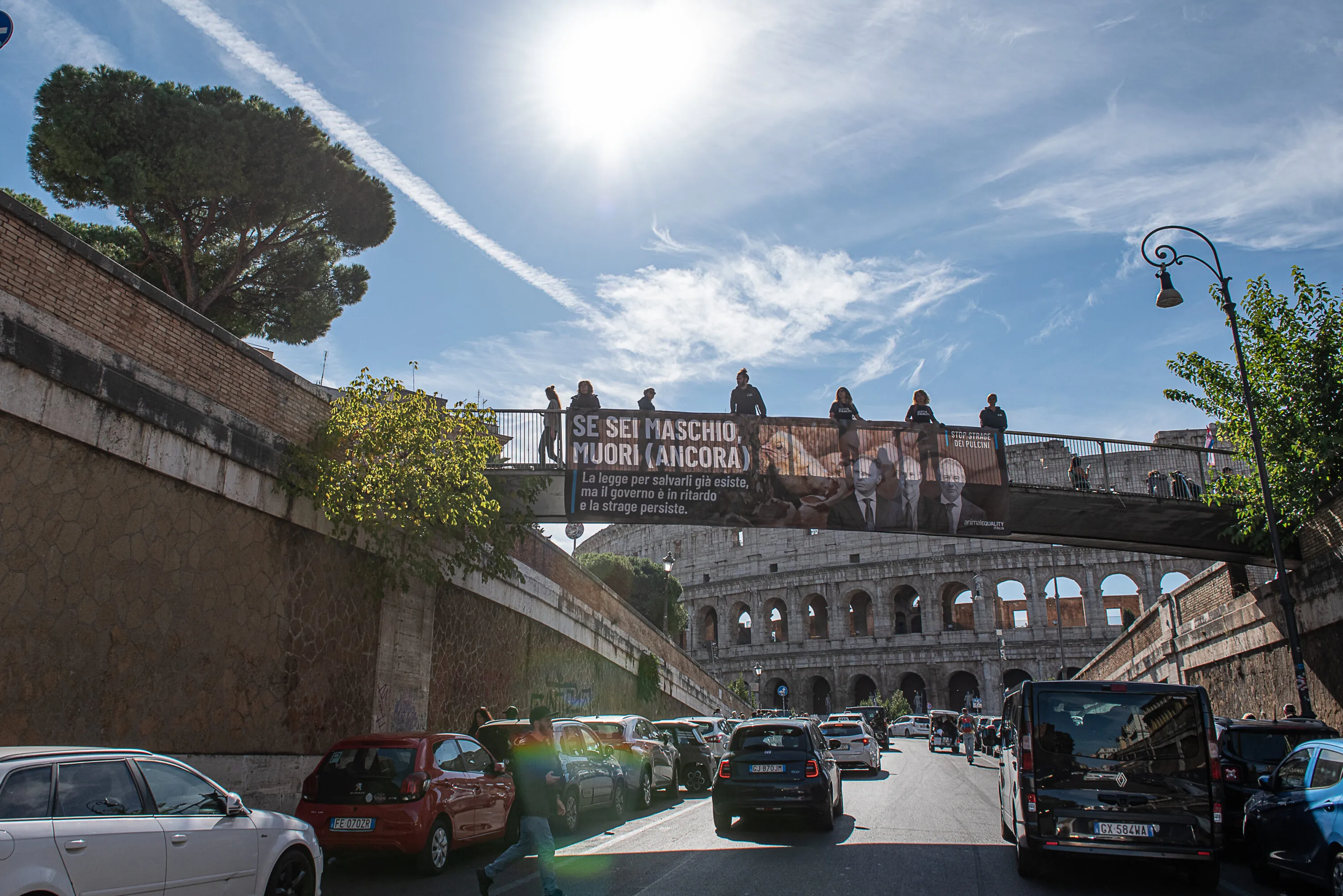 Over the past year, we have been everywhere: in front of ministries, at the Colosseum where we illuminated with the faces of Ministers responsible for enacting the ban, across the streets of Rome with 160 billboards, and in Rimini and Trento confronting Ministers directly.